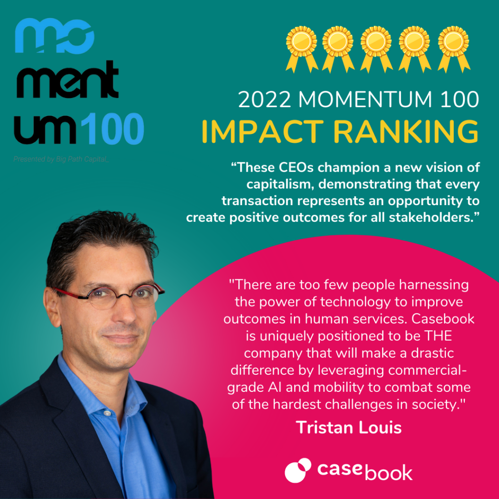 Casebook has been included in the 2022 Momentum 100, featuring the 100 companies demonstrating an opportunity to create positive outcomes for all stakeholders in every transaction!